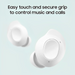 Clearly defined areas for tapping and gripping look and feel different, making it easy to secure your Buds, pause the audio and change the volume with a simple tap.