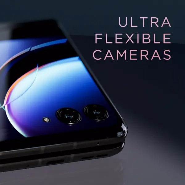 Camera performance is handled by a dual-lens system on the rear, featuring a 50MP main sensor with optical image stabilization and a 50MP telephoto lens with 2x optical zoom. The 32MP front-facing camera, embedded into the internal screen, provides crisp selfies and clear video calls. The Razr+ also features IPX8 water resistance, stereo speakers with Dolby Atmos, and Motorola’s signature software enhancements like Moto Gestures and Moto Secure.