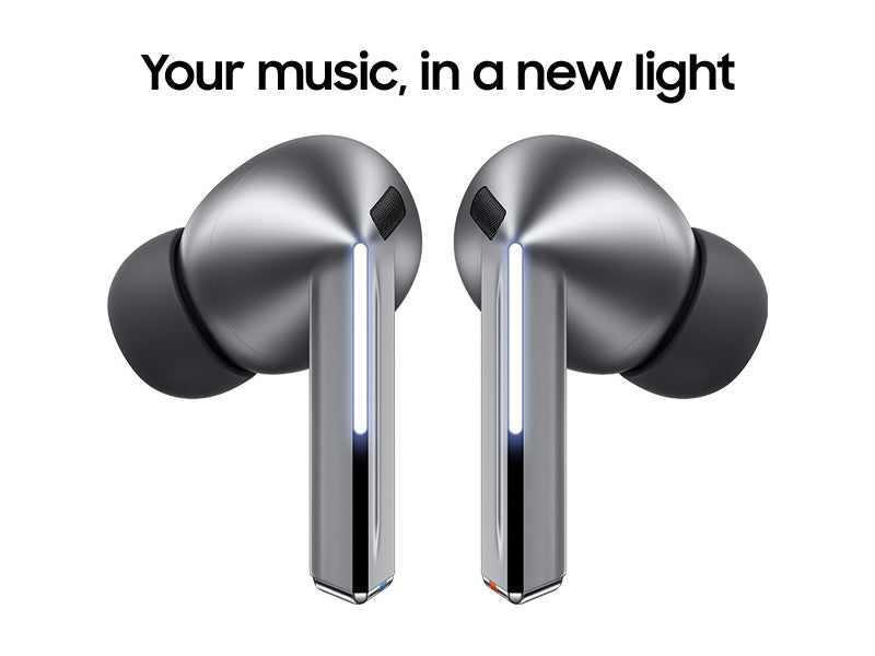 Experience ourall-new design engineered for optimal sound.Our re-imagined Galaxy Buds3 Pro feature small, angled heads for a comfortable fit and to streamline your audio experience while accented Blade Lights let you to express yourself. Highlighting the blade design is a sleek case with a transparent cover and delicate curved shape, equipped with USB-C and wireless charging capabilities.