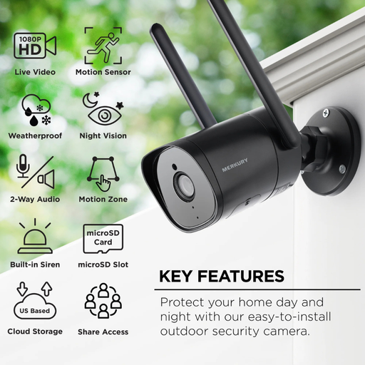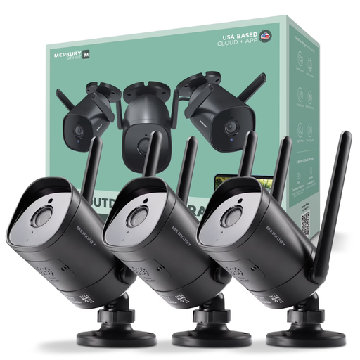 Merkury Smart Outdoor Camera 1080p (3-Pack) (MI-CW363-101) Black (NEW)